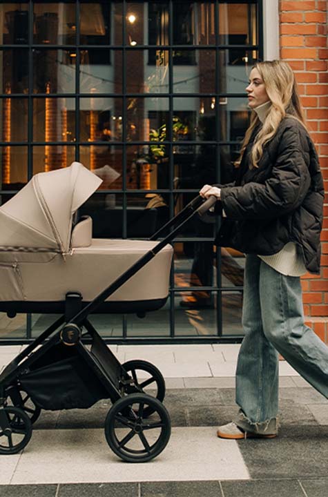 Designed for everyday city life, these wheels make handling the pram smooth and easy – whether on pavements, cobblestones, or when going over kerbs. They’re maintenance-free and puncture-resistant, so there’s no need for pumping or extra upkeep.