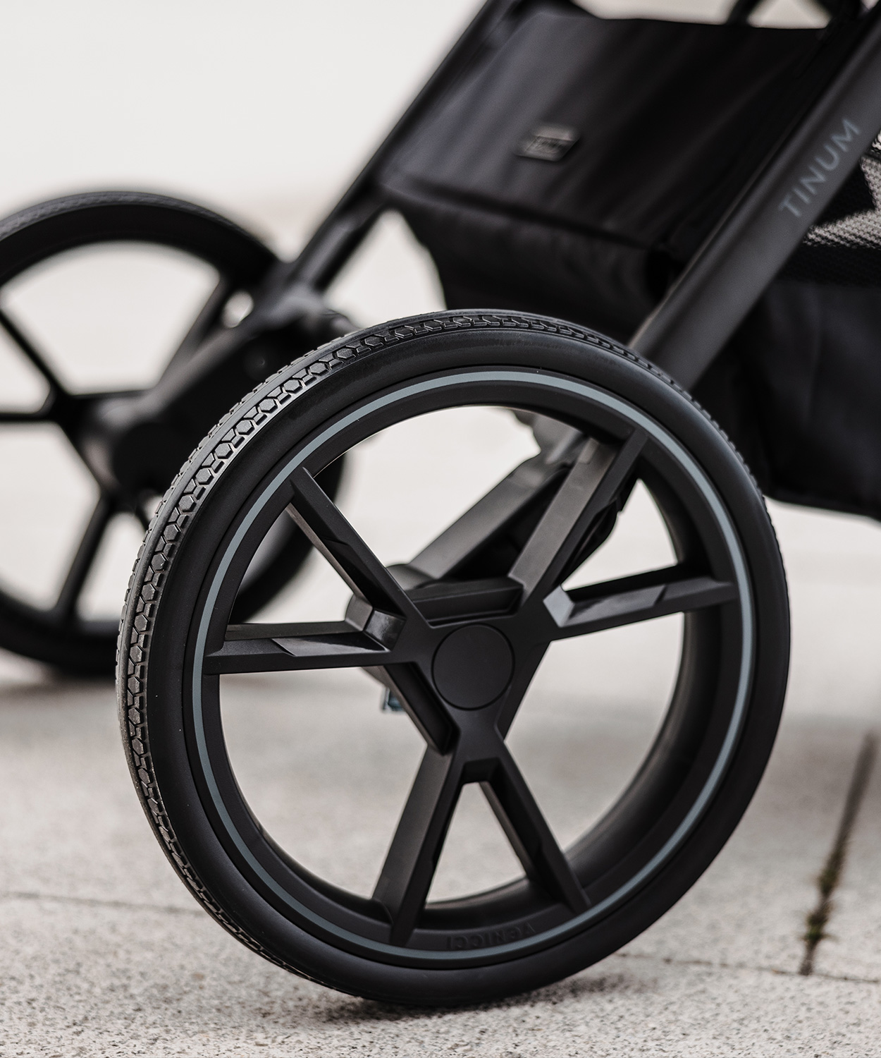 Although more understated, Tinum Edge details still beautifully accentuate the pram's line. Subtle zips and a smooth handle perfectly complement the overall look. The pushchair seat features strap adjustment. Everyday convenience is also enhanced by the panoramic ventilation in the carrycot, a material with a UV 50 filter that reflects light, and puncture-proof, solid wheels. Discover the remaining solutions personally!