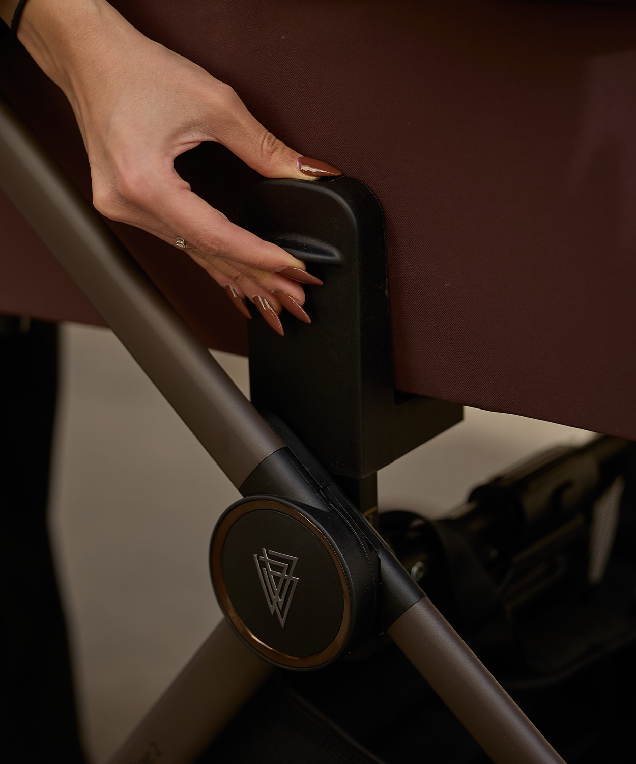 Travelling with us just got even more comfortable, and this feature is proof of that. From now on, the height adjusters are built-in. Thanks to this, both the carrycot and the seat can now be easily adjusted to a higher position. Adjust the height to suit the person pushing the pram. Simply select your preferred level with a quick motion – and off you go.